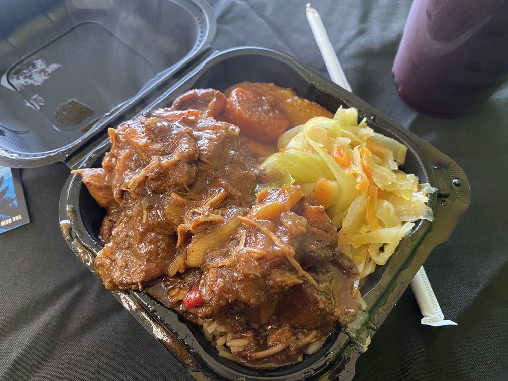- Curry Goat Platter - Tender and richly spiced, priced at $17.